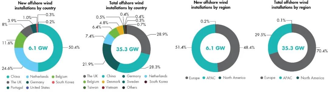 2020年全球海上風(fēng)電新增裝機(jī)6.1 GW,比2019年的6.24 GW略有降低,但GWEC預(yù)計(jì)2021年將是全球海上風(fēng)電裝機(jī)創(chuàng)紀(jì)錄的一年。